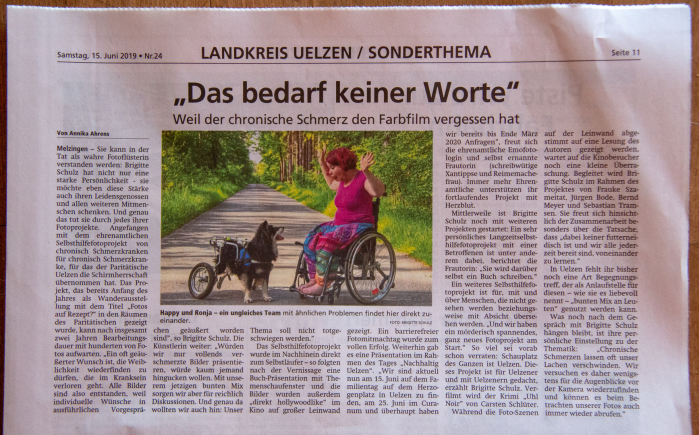 Einer so einfühlsamen Journalistin begegnen zu dürfen, ist ein Geschenk für uns. Vielen herzlichen Dank, liebe Annika Ahrens vom Uelzener Anzeiger. Dieser Artikel ist sensationell wundervoll geschrieben. Und Ronja und Happy sind bestimmt auch happy darüber. Und Happys Frauchen Bea und Moki vom Sanitätshaus für Tiere / Tierzentrum Lüneburger Heide vermutlich auch.