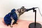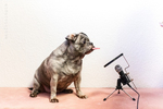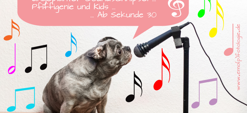 Pst: Für ein derartiges Pfotoshooting braucht es Sprühsahne. Und nach dem Podcastmikrofonpfotoshoooting brauchte Pfiffigenie auch noch einen Pott voll Futter.