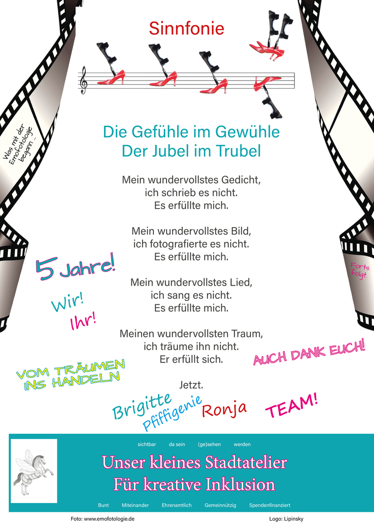 PS: Jeden Tag freue ich mich auf die Menschen, die in Unser kleines Stadtatelier kommen. Menschen, die sich ergänzen. Weil bunte Vielfalt Ergänzung schenkt. Weil bunte Vielfalt uns dazulernen lässt. Weil … Ach, ihr wisst schon, wie ich das meine. Darum machen wir demnächst auch besondere Fotos über Barrieren vor bzw. in den Köpfen.