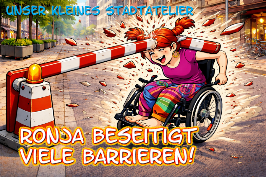 Ronja erneut gegen jene Schranke fahren zu lassen, also die Szene derart nachstellen zu lassen, wäre - auch im Namen der Kunst bzw. für den guten Zweck - nicht nett gewesen. Es hat - auch beim bloßen zugucken - damals nämlich genauso weh getan, wie uns noch heute zu viele Barrieren anders schmerzen. Meistens sind es Barrieren in Köpfen, die uns zu schaffen machen. Doch auch räumliche Barrieren, die uns das Leben unnötig schwer machen oder uns einen Zutritt gänzlich verwehren, machen uns hier und da beinahe sprachlos.